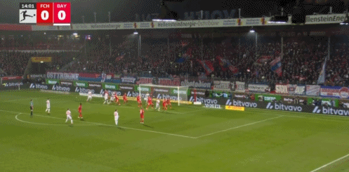 面對海登海姆,拜仁踢得順風(fēng)順?biāo)?。比賽的?5分鐘,奧利塞主罰右側(cè)角球,斯坦尼西奇頭球沖頂破門,1比0!